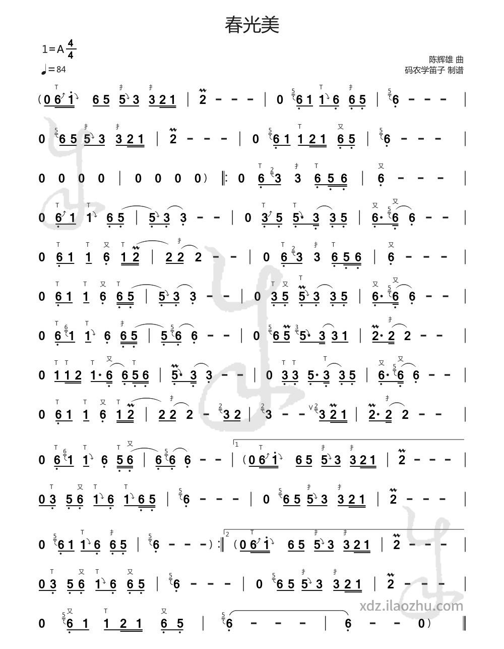 为了更适合竹笛演奏,该曲谱基于轻音版制作,曲调为