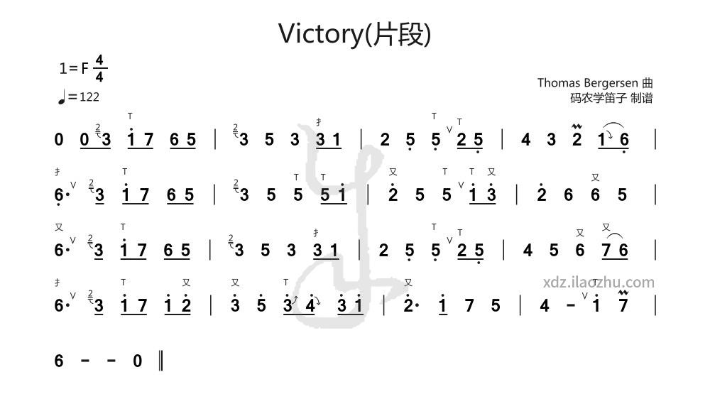该曲谱是《Victory》中适合竹笛演奏的片段,曲调为