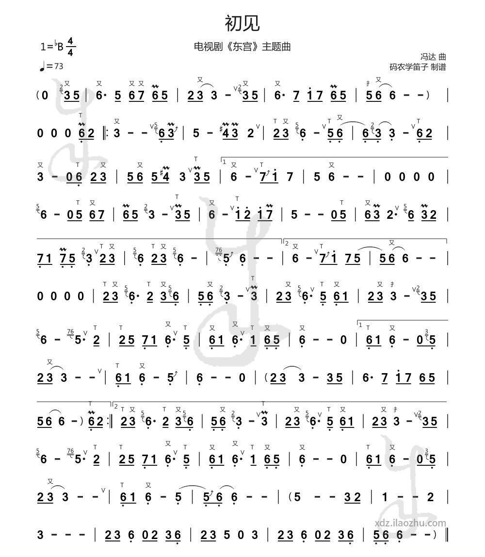 B♭调,原本需要高低音两支笛子(或两种乐器)来模拟男女声交替的效果,但为了简便,该曲谱已略作调整,可用F调笛子筒音作2演奏。