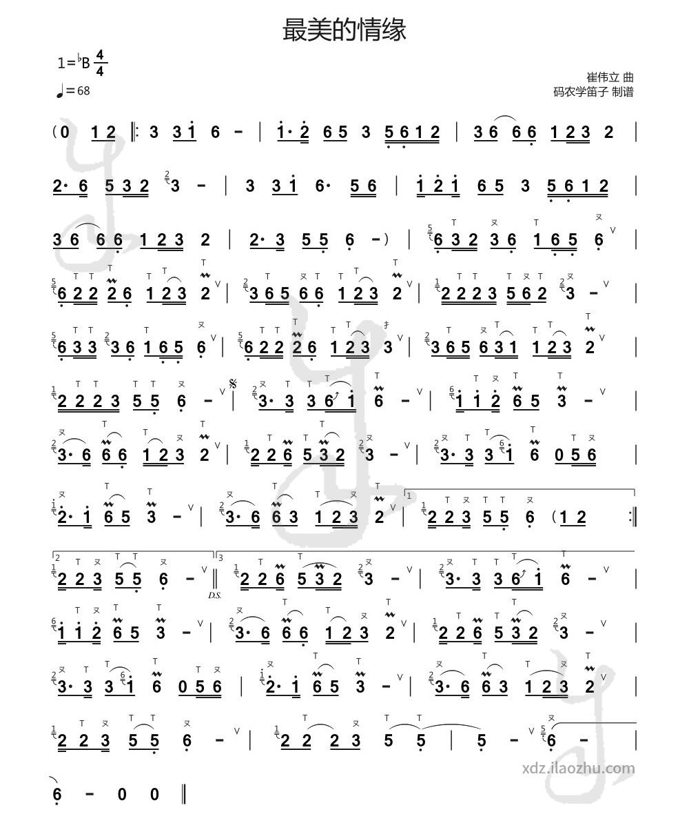 B♭and can be played on anB♭-keydizi (Chinese bamboo flute) with the fundamental tone tuned to5.