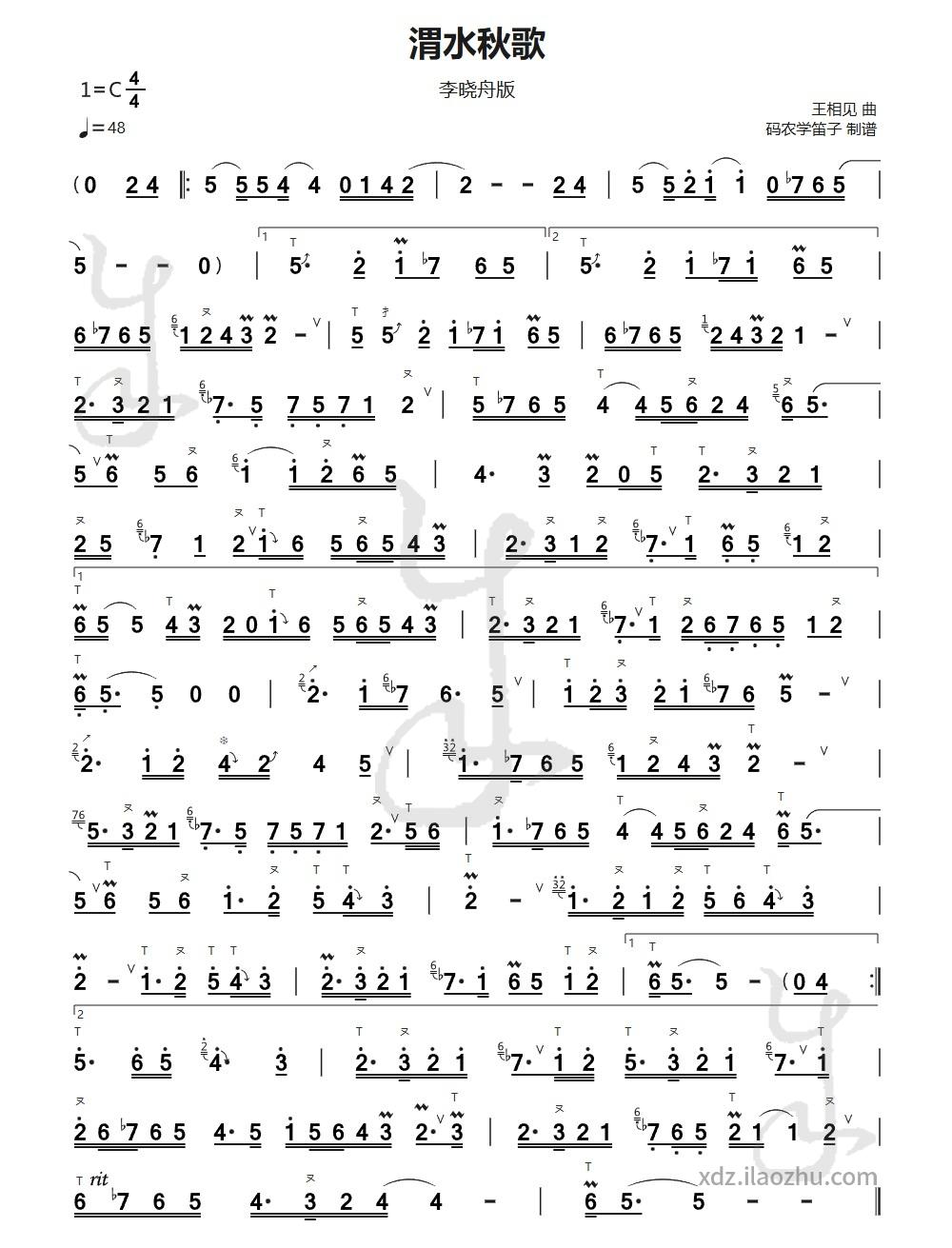 《渭水秋歌》原曲创作于 2007 年左右,王相见先生以陕西民间音乐和秦腔音调为素材,通过笛子独特的音色描绘了渭河流域秋季的壮丽景色和三秦大地的人文风貌。慢板采用陕西秦腔音乐弦乐曲牌《永寿庵》,如泣如诉,深沉哀怨,快板采用陕西合阳县线腔音乐,热情奔放,充满活力,整首作品融合了故土眷恋、流浪孤寂、自然赞美与历史沉思多重情感,被誉为 "一曲乡愁,万般柔情"。同时,该曲子也是笛子爱好者必学曲目之一,被收录于多个专业教材和曲谱集中。