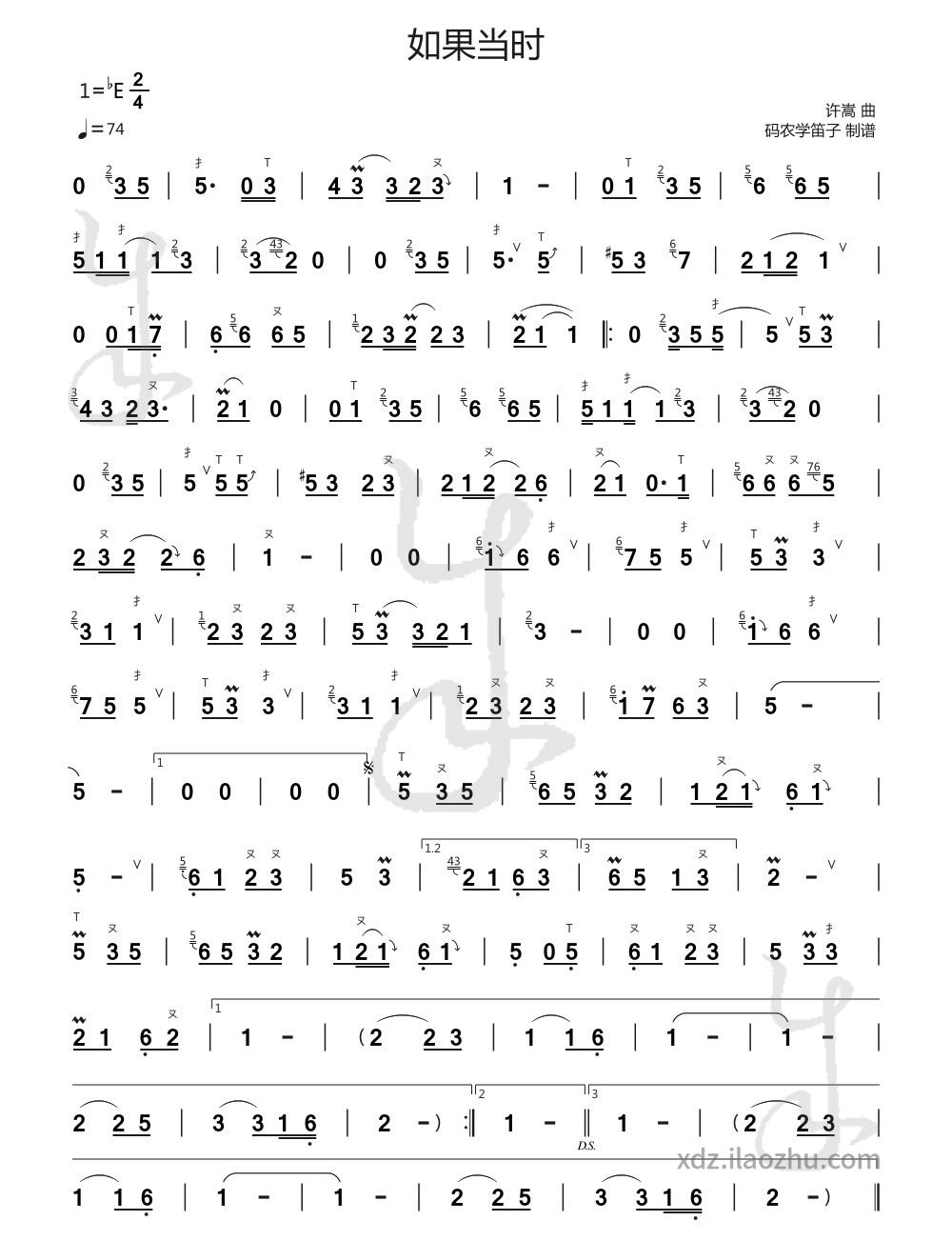 To facilitate bamboo flute performances, this music score is adapted from Jane Zhang’s collaborative version, which is essentially a cover of If at That Time 2020 . Set in the key of