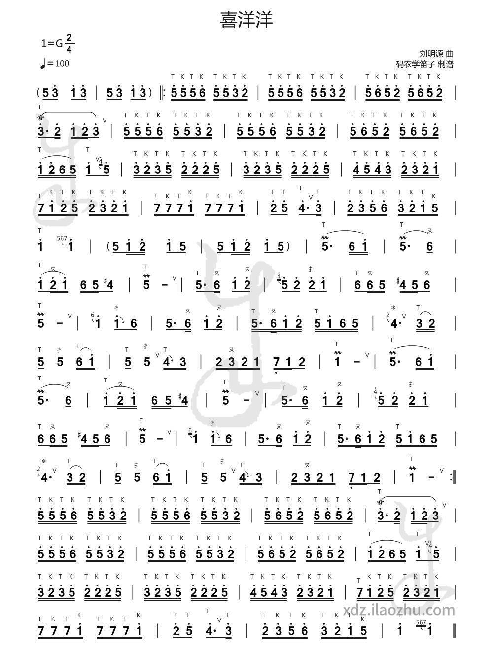 G. It can be played on aG-keybamboo flute with theclosed-hole note as 5. It is ideal for bamboo flute learners to practice single tonguing, double tonguing, and dynamic breath control, effectively improving the performer’s rhythm and technical skills.